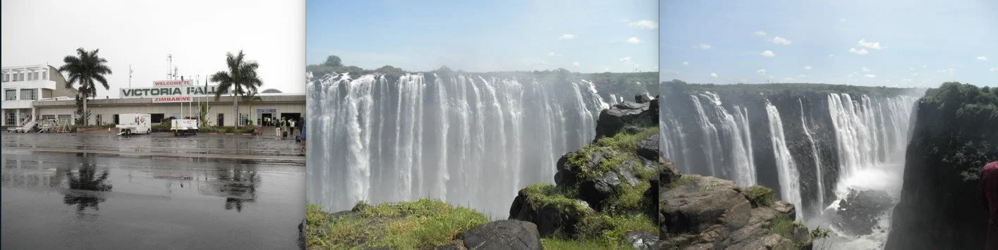 After coming halfway around the globe, obviously the highlight of the planned visit here was to see Victoria Falls itself since it is one of the Seven Natural Wonders of the World. From the hotel we could see the towering cloud that rises into the sky from the falls in the distance, but up close on the pathways to the various viewpoints on the Zimbabwe side of the falls all that water comes back down like a constant heavy rain. In places it was too wet to even try taking pictures, but I still tried to take as many shots as I could, and the little Olympus camera survived even though it did have a watermark across one side of the LCD screen for days afterwards.